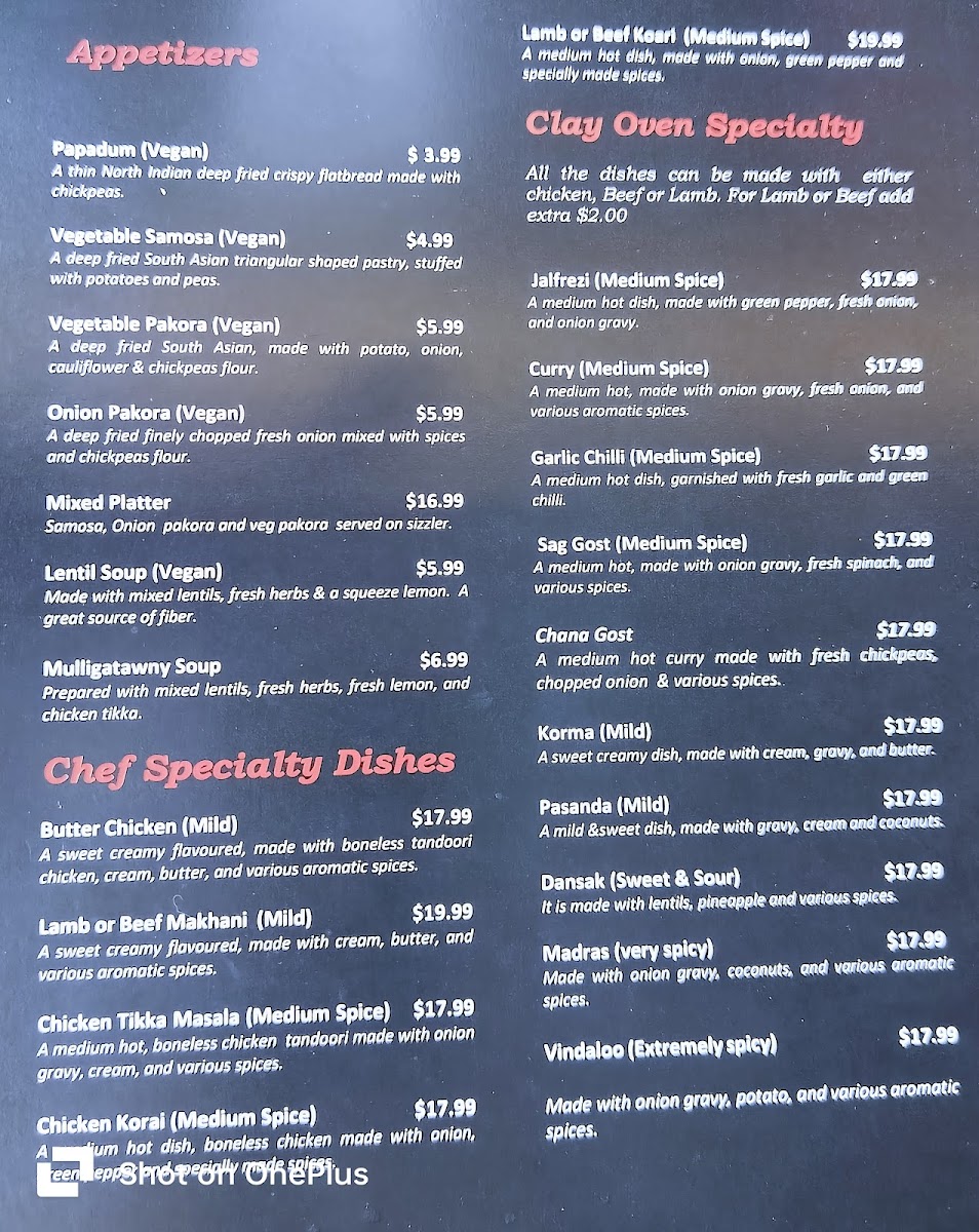 Introducing the menu at The Clay Oven, a delightful Indian restaurant nestled in St. Thomas, ON, where authentic flavors take center stage. Located at 648 Talbot St, The Clay Oven is celebrated for its rich and diverse menu, featuring dishes that transport you directly to the heart of India.